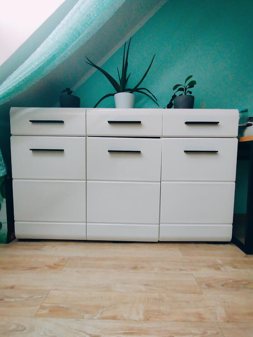 Sprzedam dwie takie same komody. Wysokosc-93cm, szerokosc-150cm, glebokosc-43cm. Cena za obie 400 zł. Odbiór we własnym zakresie.