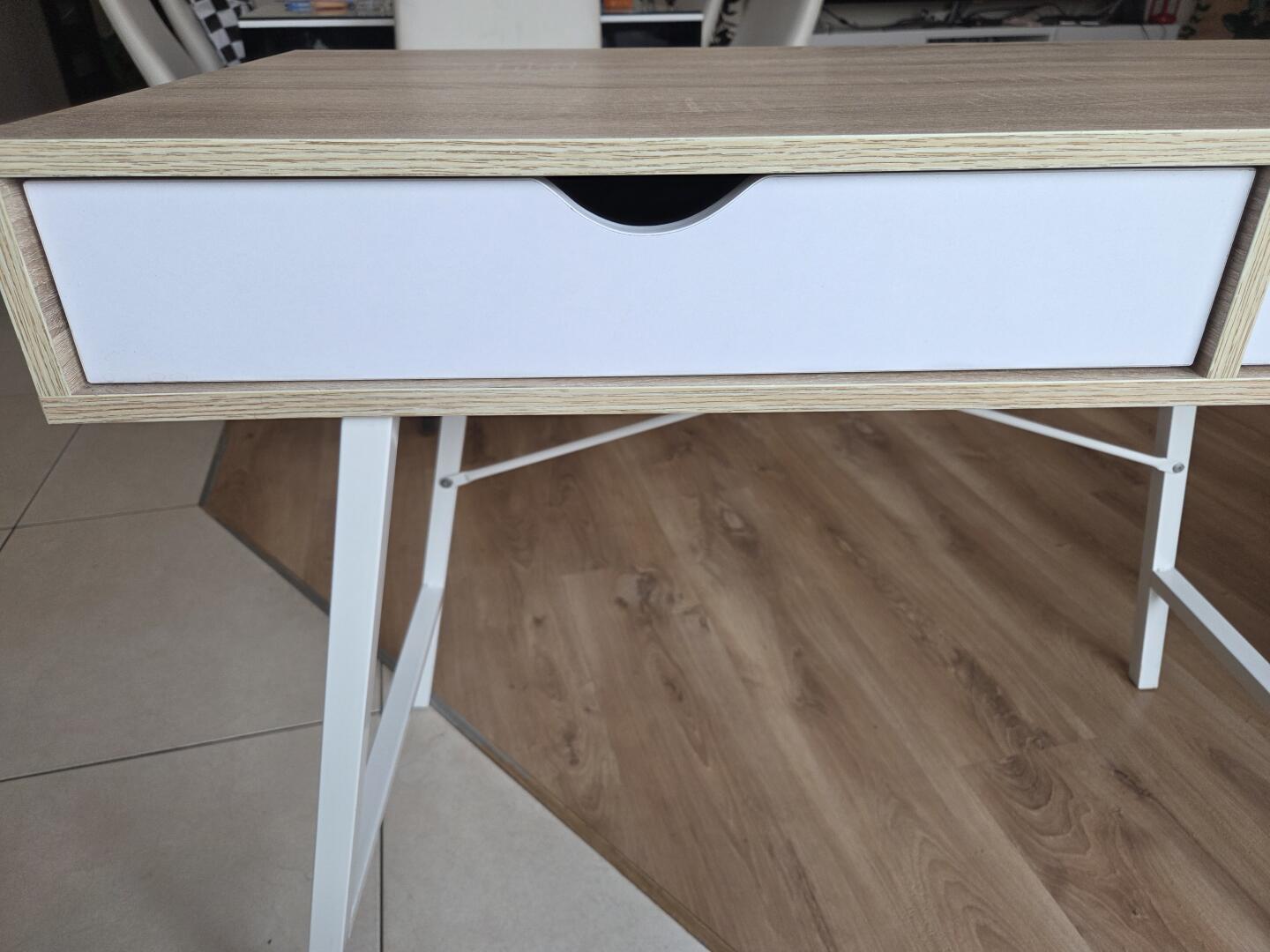 Sprzedam biurko w stylu skandynawskim o wymiarach 100x50 cm. Posiada dwie pojemne szuflady, które zapewniają dodatkową przestrzeń do przechowywania. Idealne dla dziecka od początków edukacji ze względu na wysokość. Biurko jest bardzo solidnie wykonane i ciężkie. Stan biurka bardzo dobry. Jak widać na zdjęciach. Odbiór osobisty.