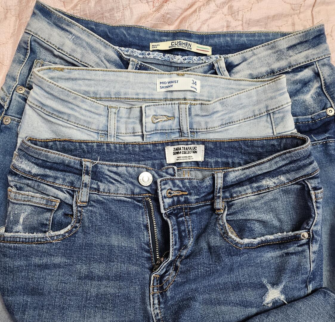 Sprzedam torbę pełną jeansów dziewczęcych skinny wąskie rozmiary XS/S czyli 34-36 + 1 kurtka jeansowa rozmiar S.
