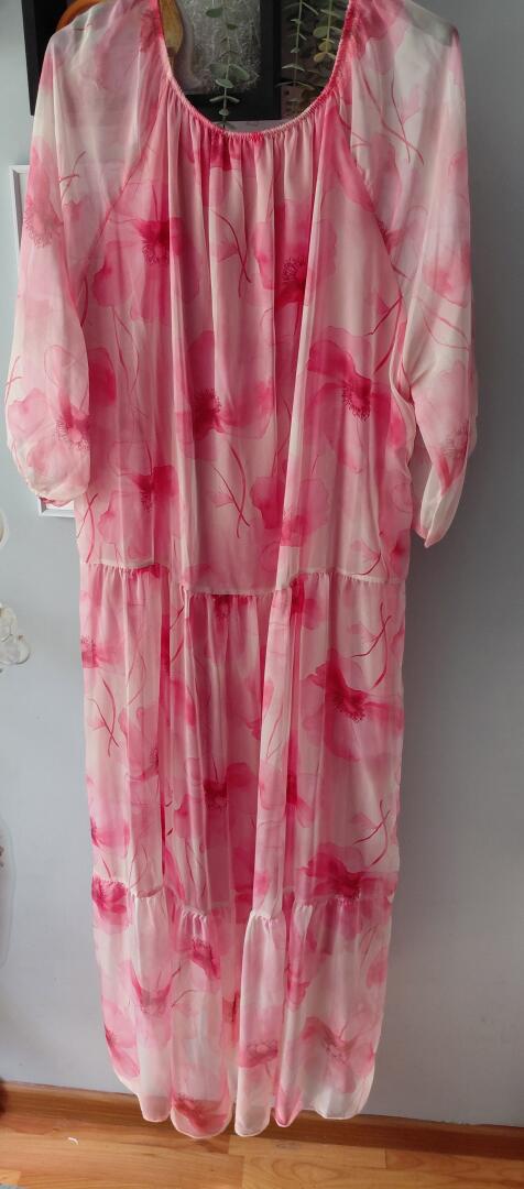 Nowa sukienka na rozmiar uniwersalny kolor arbuzowy dkugosc 130cm cena 50 zł