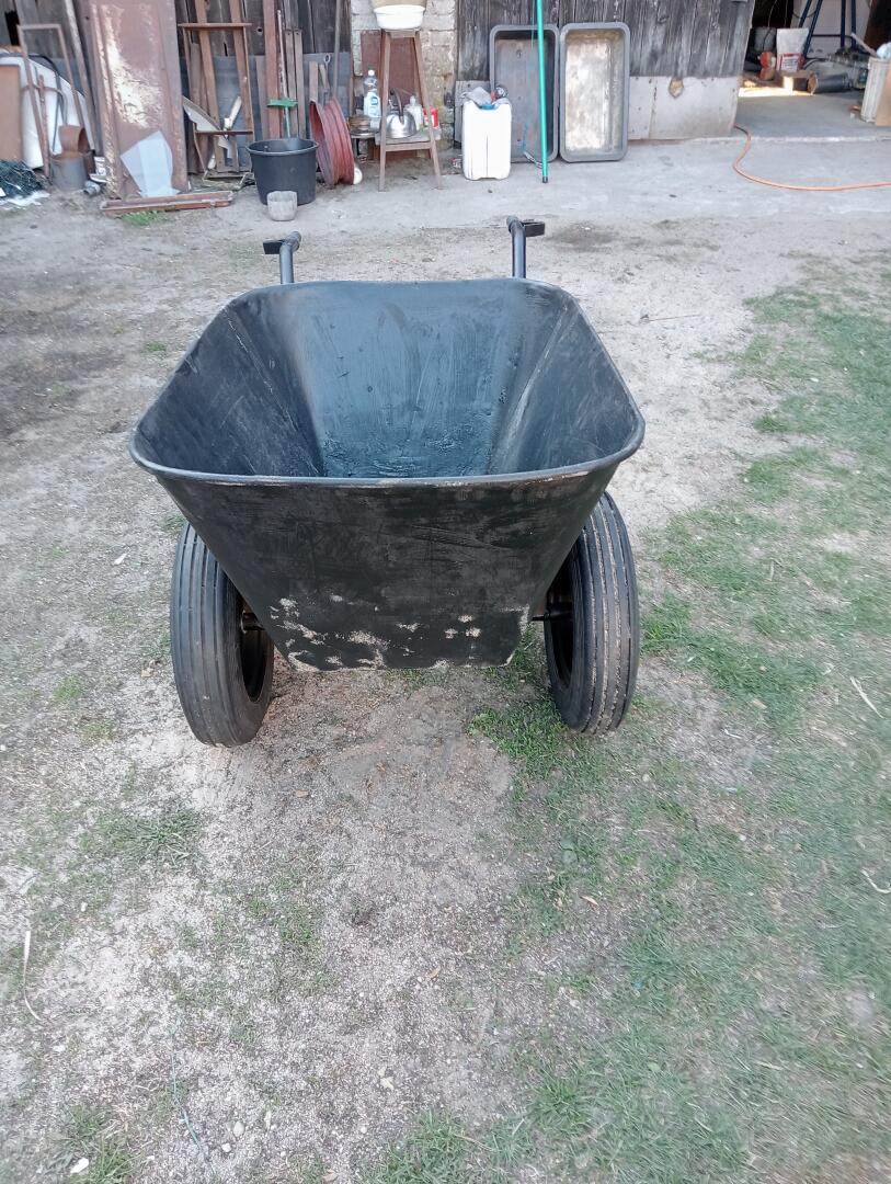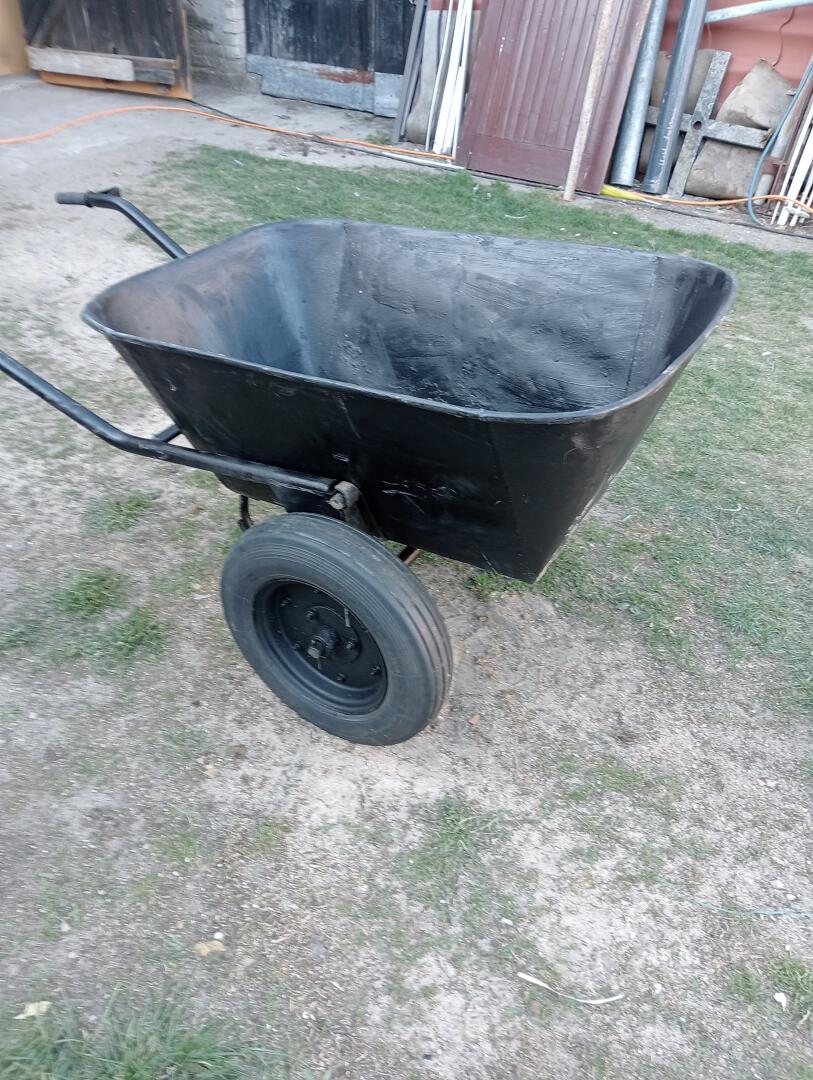 Sprzedam taczke PRL - wywrotka, masywna gruba blacha, oryginalne koła od zgrabiarki skręcane 10-ątki.